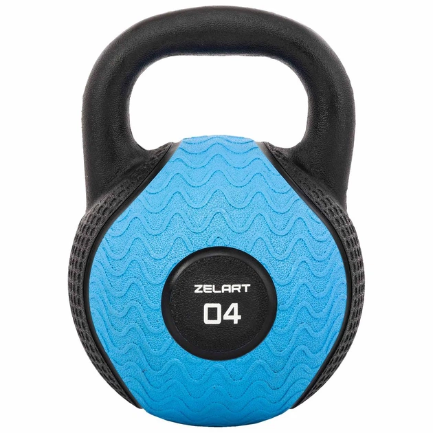 Гиря гумова 4 кг тренувальна цільна Zelart 4757-4 вага 4кг Black-Blue