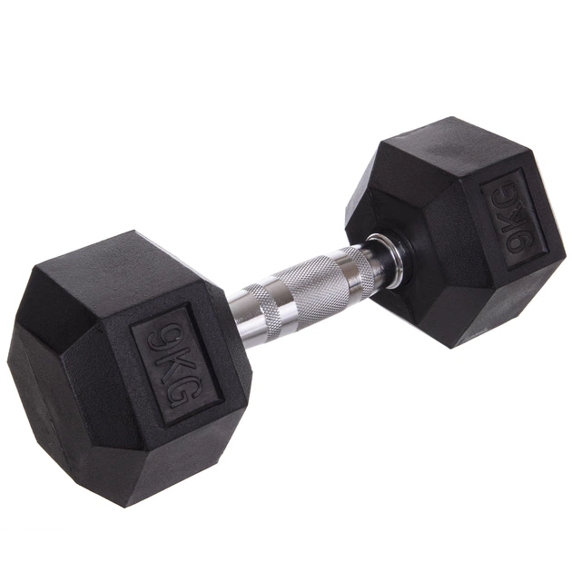 Гантель цільна шестигранна гексагональна гексагональна обгумована 1 штука SP-Planeta SC-8013-9 (1x9кг) (сталь хромована, гум