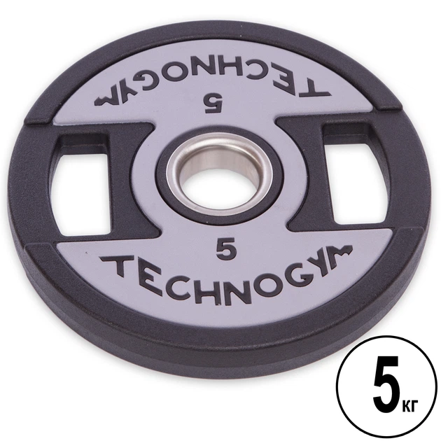 Млинці диски 5 кг поліуретанові 2 Handle металева втулка Внутрішній діаметр диска 51 мм 1 шт TECHNOGYM чорні