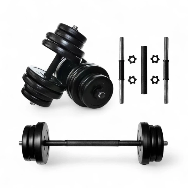 Комплект гантелей + з'єднувач - 32 кг (2 шт по 16 кг) розбірні зі змінними дисками
