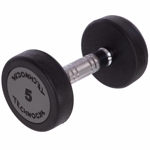 Гантель цільна професійна з поліуретановим покриттям TECHNOGYM (LN-1254-5) 1шт 5кг Чорний-сірий