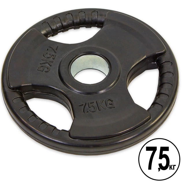 Млинці диски гумові з потрійним хватом та металевою втулкою Record TA-8122-75 52мм 7,5кг чорний