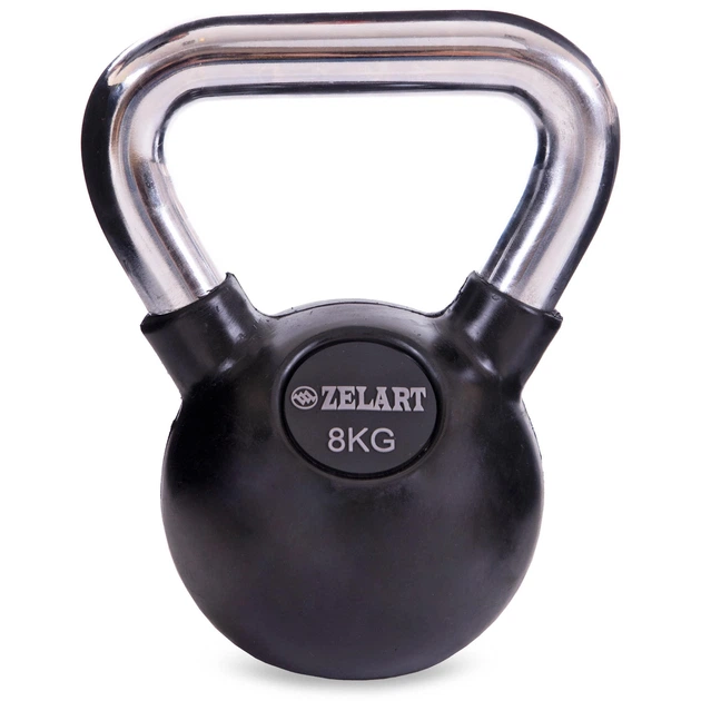 Гиря тренувальна цільна обгумована з хромованою ручкою Zelart (TA-5162-8) 8кг Чорний