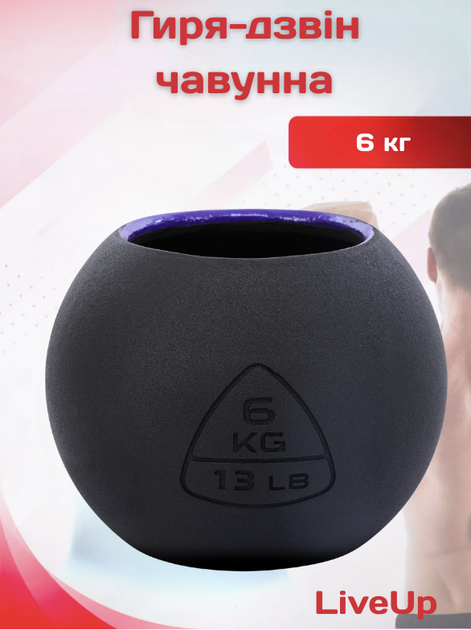 Гіря-дзвін чавунна чорна пофарбована BALL BELL LiveUp LP8047-13LB 6кг (чавун)