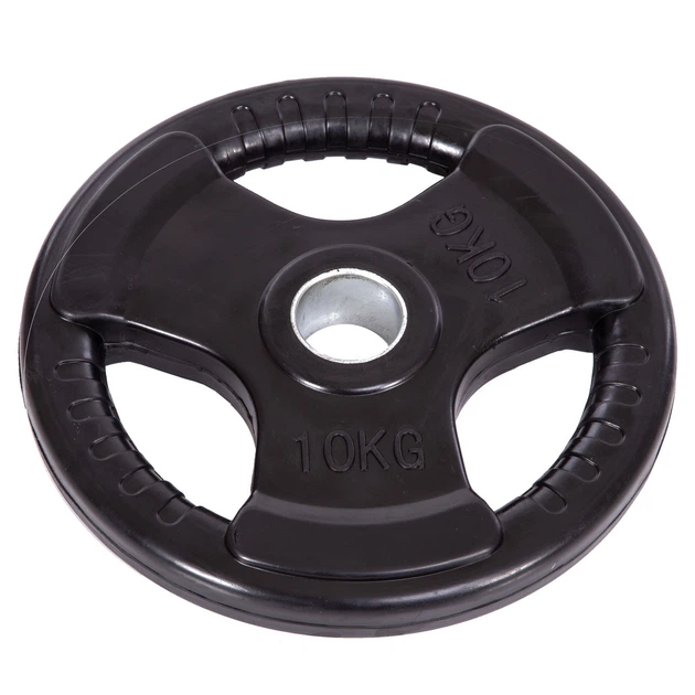 Млинець гумовий 10 кг для штанги з потрійним хватом Zelart 5706-10 1шт діаметр 52мм Black