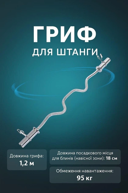 Гриф EasyFit EZ Z-подібний олімпійський 1.2 м, 50 мм, 7.3 кг, хромований