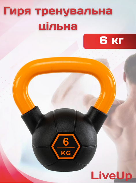 Гиря тренувальна цільна гумова з пофарбованою ручкою LiveUp Urethane competition kettlebell UAZE5336-6 6кг (чавун, чорний ор
