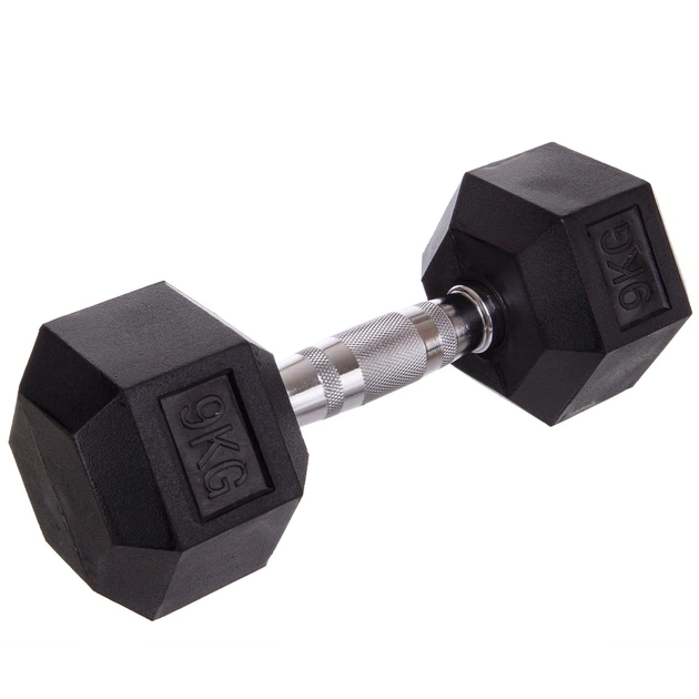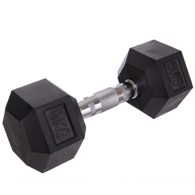 Гантель цільна шестигранна гексагональна гексагональна обгумована SP-Planeta (SC-8013-9) 1шт 9кг Чорний