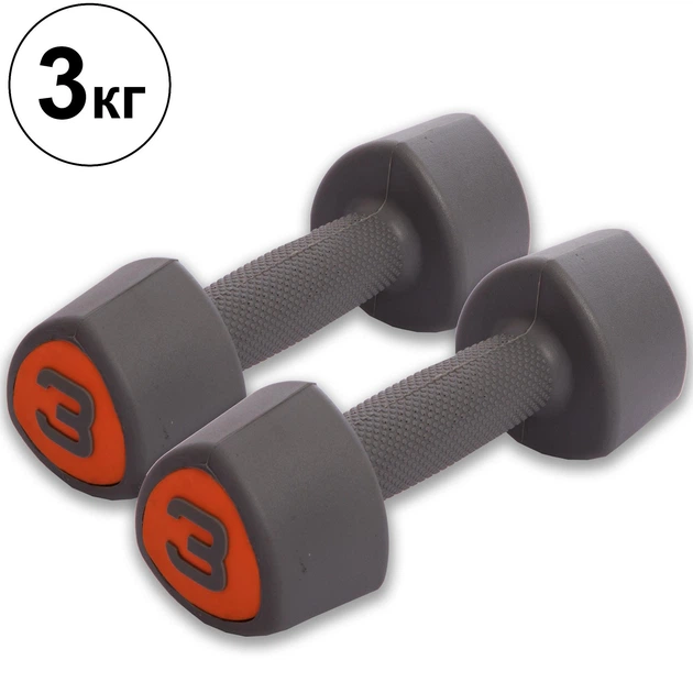 Гантелі цільні з поліуретановим покриттям Record (TA-0930-3) 2шт 3кг Сірий-помаранчевий