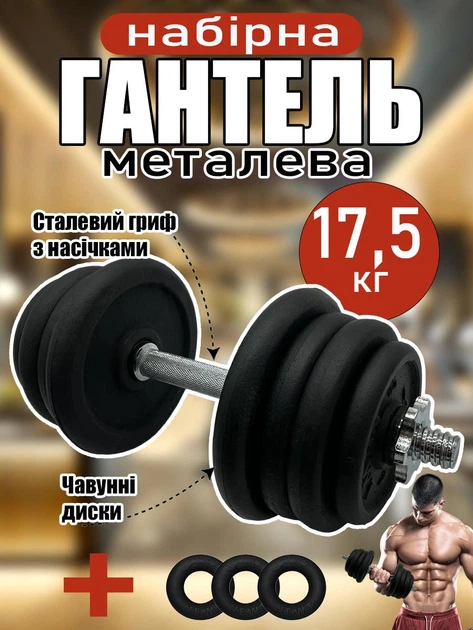 Гантель набірна металева із регулюванням ваги чавунними блінами та хромованим грифом для гантелі розбірна для дому фітнесу с