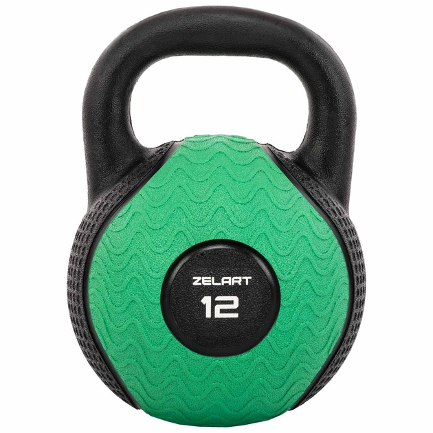 Гиря гумова 12 кг тренувальна цільна Zelart 4757-12 вага 12кг Black-Green
