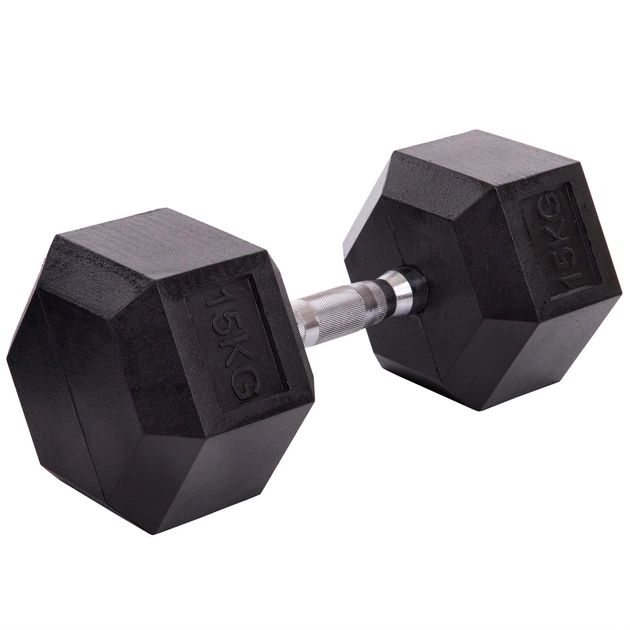 Гантель цільна шестигранна гексагональна обгумована SP-Planeta (SC-80075-15) 1шт 15кг Чорний