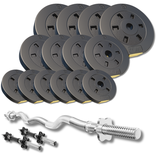 Набір зі штангою та гантелями Besport PowerPro 46кг з w-подібним грифом 120см