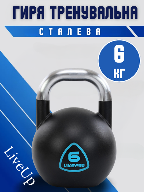 Гиря сталева пофарбована із хромованою ручкою LiveUp LP8042-6 6кг (чорний)