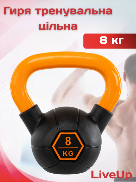 Гиря тренувальна цільна гумова з пофарбованою ручкою LiveUp Urethane competition kettlebell UAZE5336-8 8кг (чавун, чорний ор