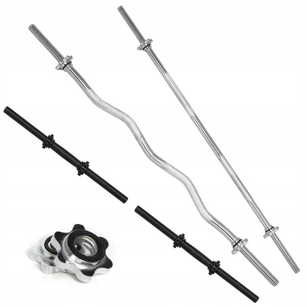 Набір грифів WCG (4 шт) — прямий 180 см 28, W-гриф 120 см 28, 2гантельні 45 см 30, замки-гайки