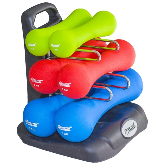 Набір вінілових гантелей на підставці Vinyl Dumbbell Set NE-VIN-125, 2 шт по 1 кг, 1,5 кг, 2 кг