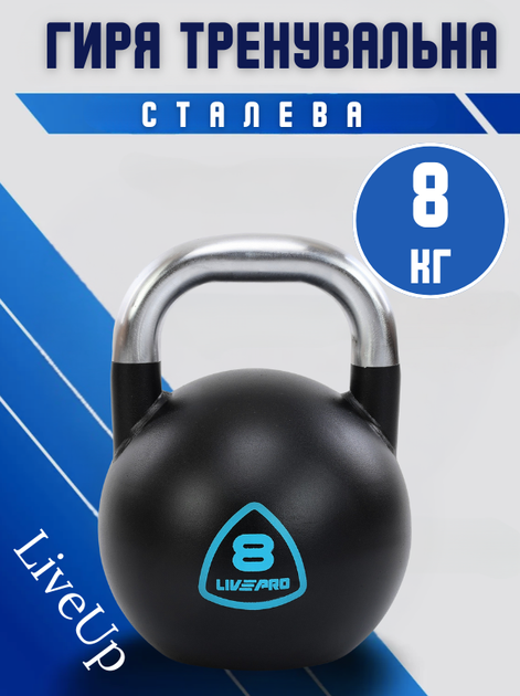 Гиря сталева пофарбована із хромованою ручкою LiveUp LP8042-8 8кг (чорний)