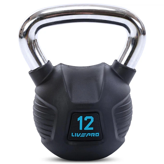 Гиря 12кг цільна тренувальна гумова з хромованою ручкою LivePro 8043-12 вага 12кг