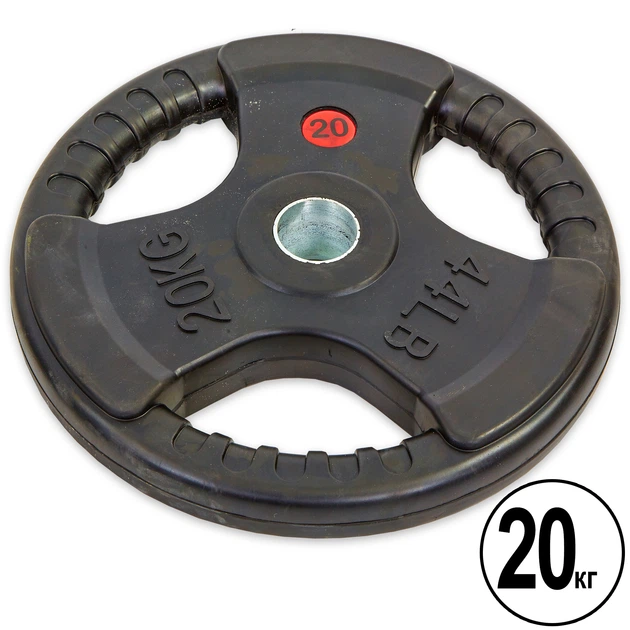 Млинці (диски) гумові з потрійним хватом та металевою втулкою d-52мм Record 20кг (чорний) (TA-5706-20)