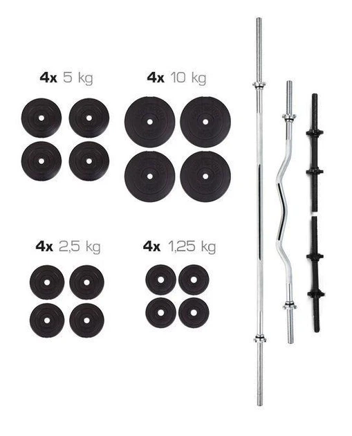 Набір WCG штанга і гантелі 91 кг — прямий 180 см 28, W-гриф 120 см 28, 2 гантельні 45 см 30
