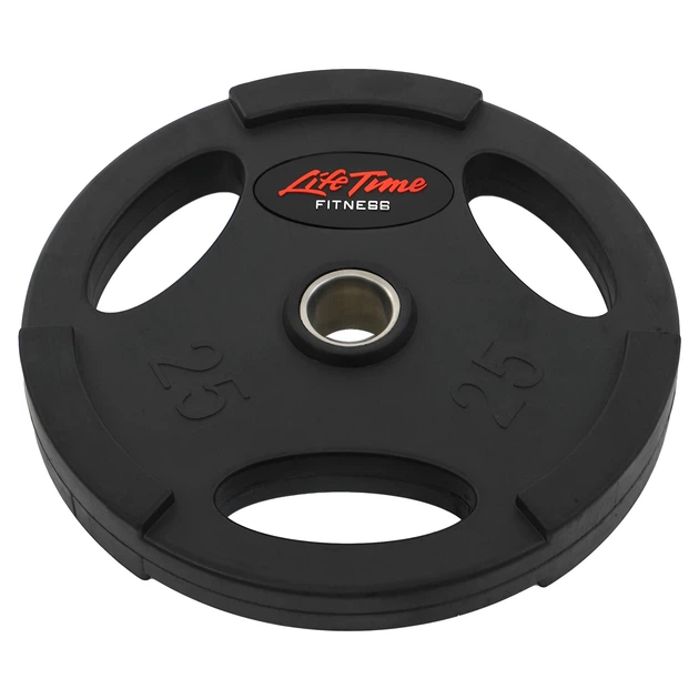 Млинці диски 25 кг Метал гумові з потрійним хватом та металевою втулкою Внутрішній діаметр диска 51 мм 1 шт LIFE FITNESS чор