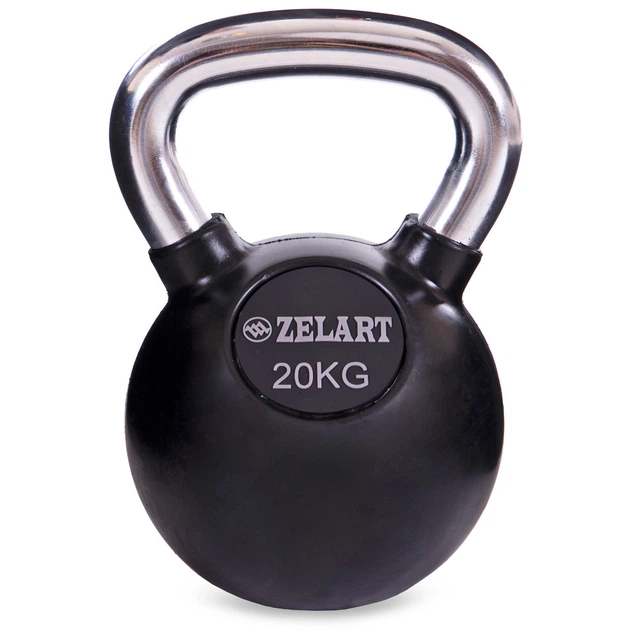 Гиря 20 кг тренувальна цільна гумова з хромованою ручкою Zelart 1 шт чорна TA-5162-20