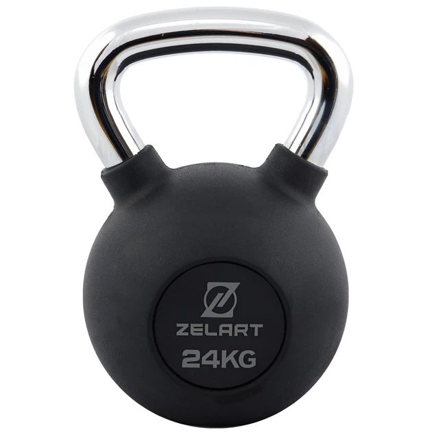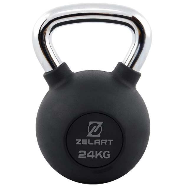 Гиря 24 кг тренувальна цільна чавунна гумова з хромованою ручкою Zelart 1 шт чорна TA-7794-24