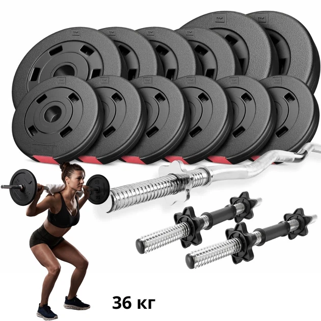Набір Hop-Sport Premium 36 кг зі штангою та гантелями набірними гриф прямий W-подібний для новачків