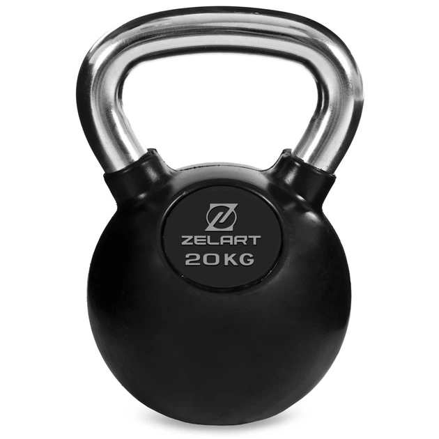 Гиря тренувальна цільна обгумована з хромованою ручкою Zelart (TA-5162-20) 20кг Чорний