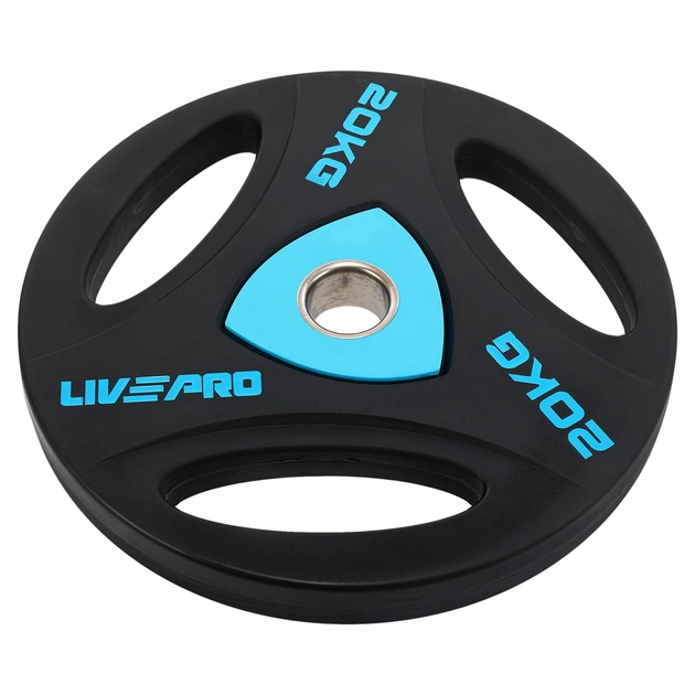 Диски поліуретанові з потрійним хватом і металевою втулкою внутрішній 51мм LiveUp LP8020-20 20кг (чорний)