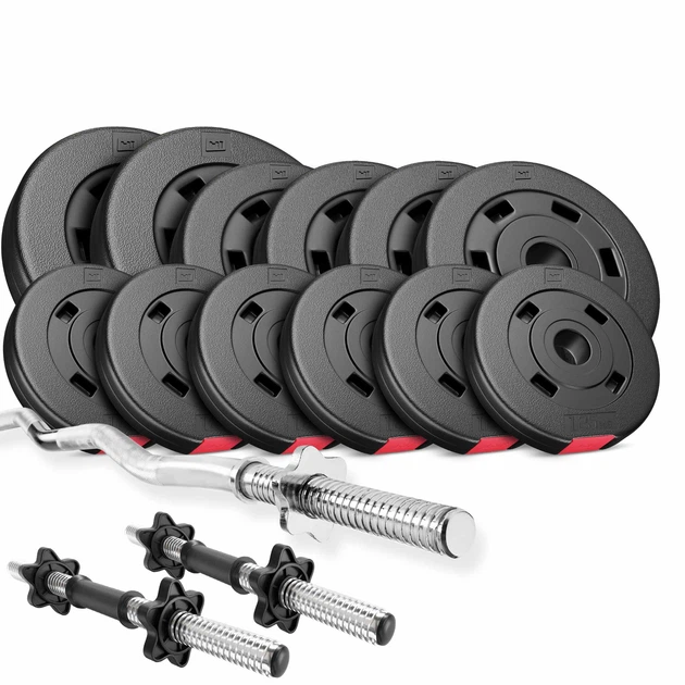 Набір гантелей зі штангою та гирей 3в1 40кг (наповнювач цемент, чорний-червоний) (LN-1100-40)