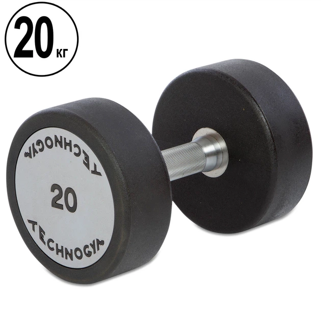 Гантель цільна професійна з поліуретановим покриттям TECHNOGYM (TG-1834-20) 1шт 20кг Чорний-сірий