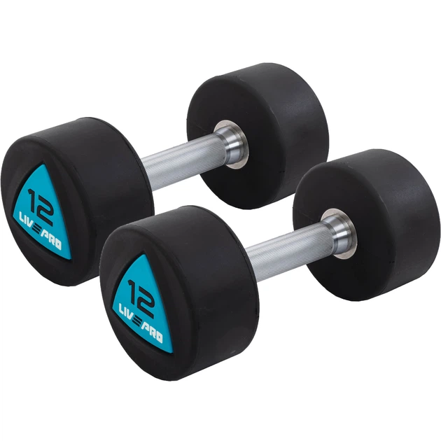Гантелі цільні по 12 кг професійні з поліуретановим покриттям LiveUp LP8002-12