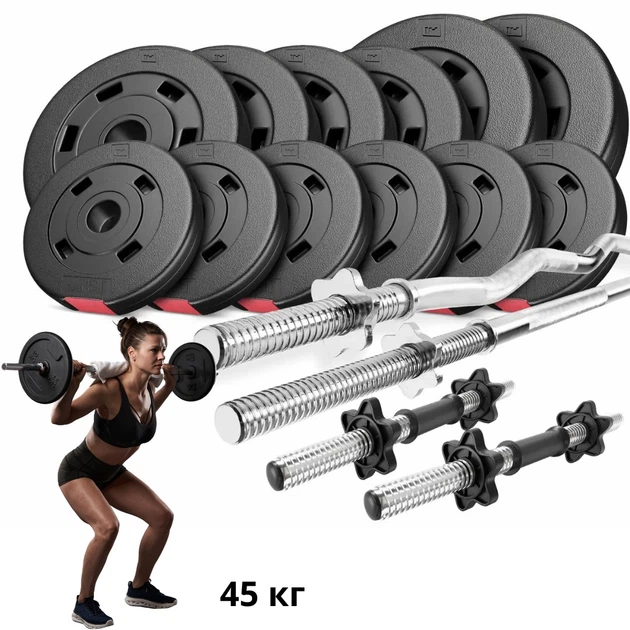 Набір Hop-Sport Premium 45 кг зі штангами та гантелями набірними гриф прямий для силових тренувань
