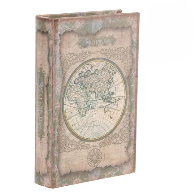 Металева книга-схованка з 2 ключами Стара карта світу 26x17x5 cм