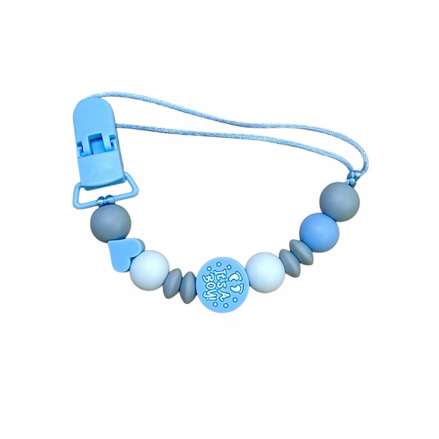 Тримач для пустушки з харчового силікону it`s a boy, Блакитний