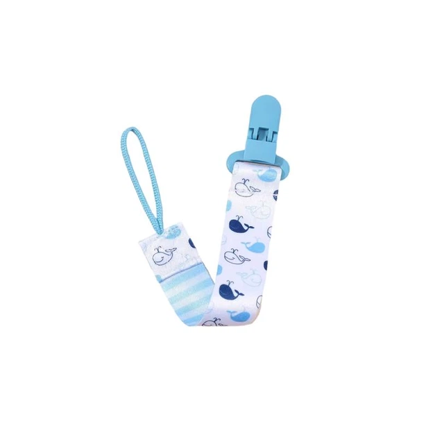Тримач для пустушки стрічка з затискачем-кліпсою кити, Білий з синім