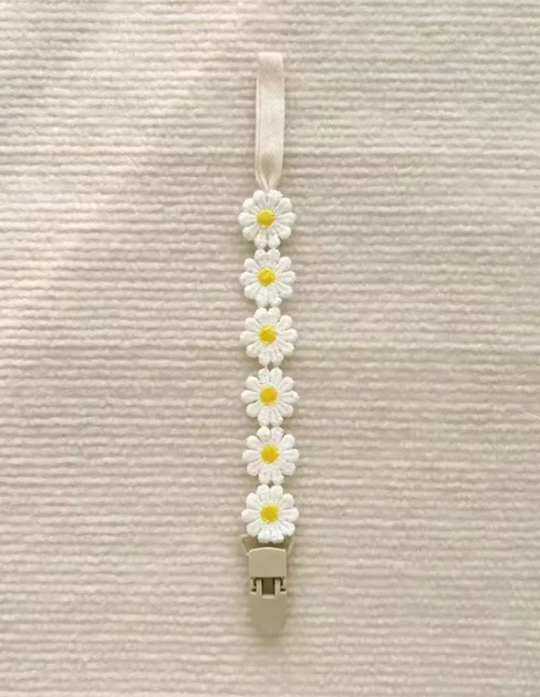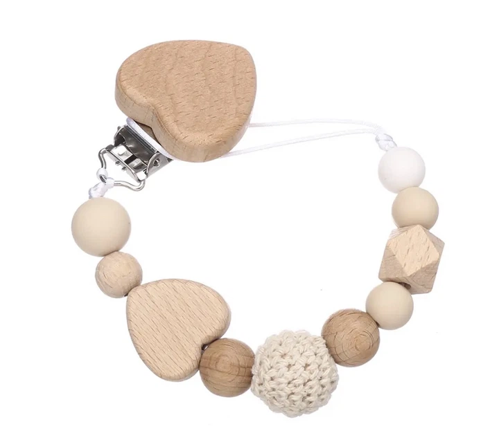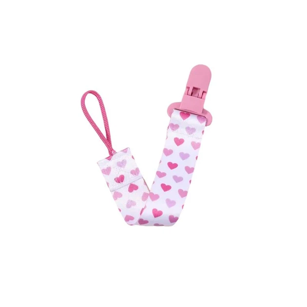 Тримач для пустушки стрічка з затискачем-кліпсою серця, Білий з рожевим
