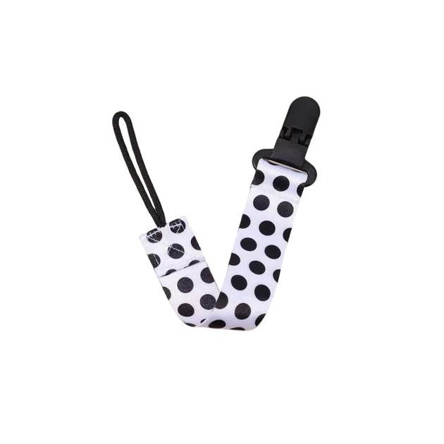 Тримач для пустушки стрічка з затискачем-кліпсою в горошок, Білий з чорним