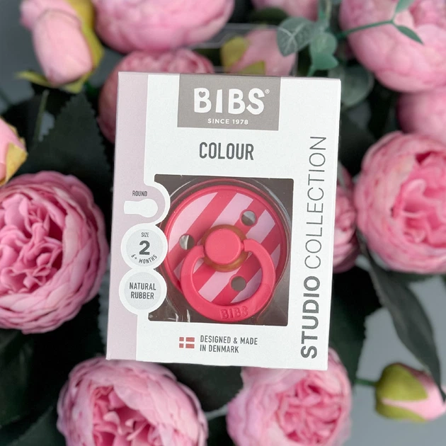 Соска пустушка розмір 2 (6 - 18 міс.) BIBS Studio Colour Latex Round (кругла) –Block – Coral / Baby Pink