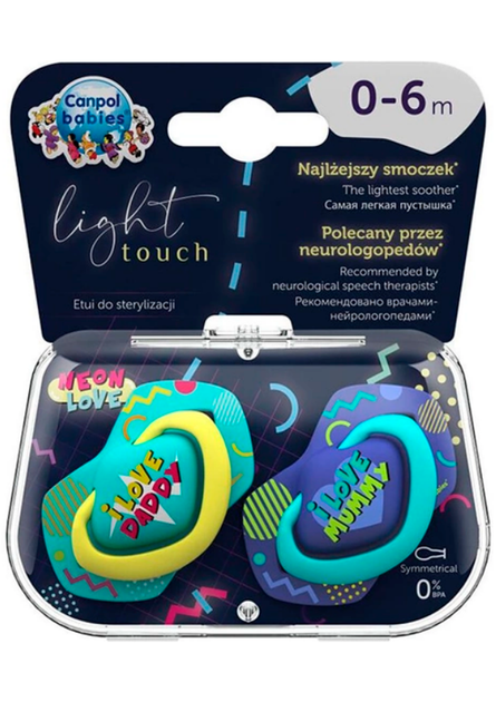 Пустушки силіконові 0-6 місяців Canpol Babies Neon Love блакитні, симетрична форма