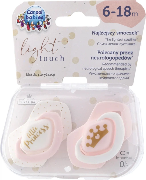 Пустушки Canpol babies Royal baby 6-18 місяців, біло-рожева, симетрична форма, динамічна