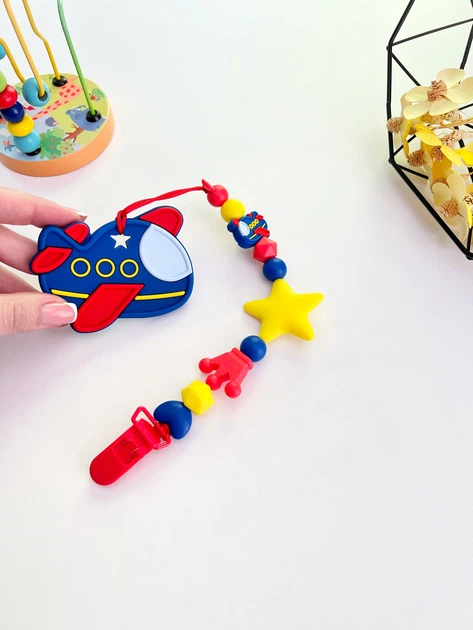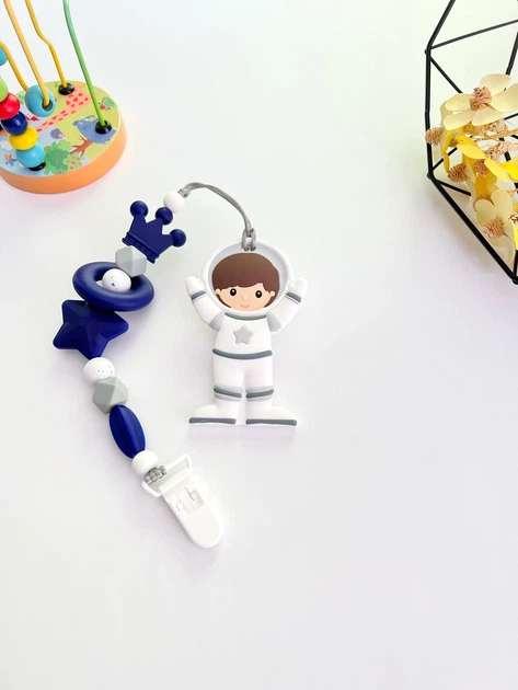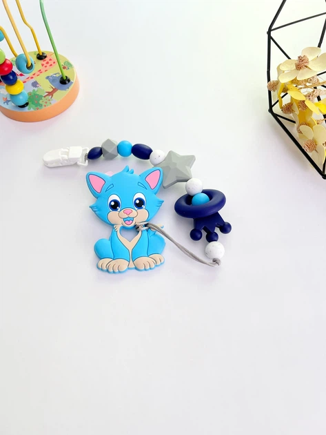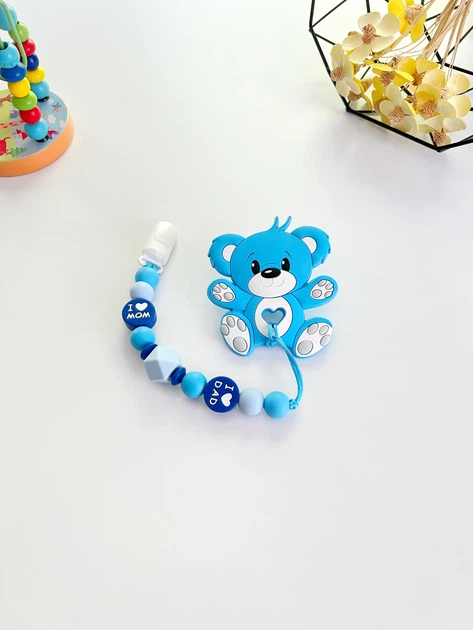 Іменний силіконовий тримач з ім'ям+ гризунець Панда Блакитні тони Ім'я будь-яке