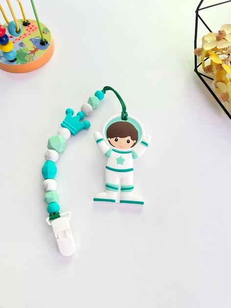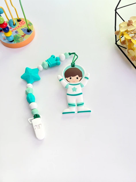 Іменний силіконовий тримач з ім'ям+ гризунець Панда бірюза Ім'я будь-яке