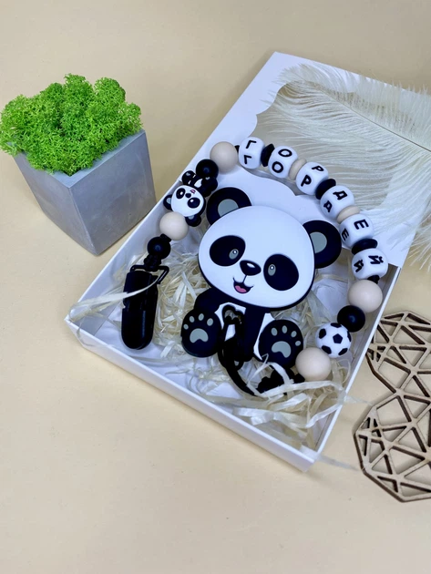 Іменний силіконовий тримач з ім'ям+ гризунець Панда Ім'я будь-яке