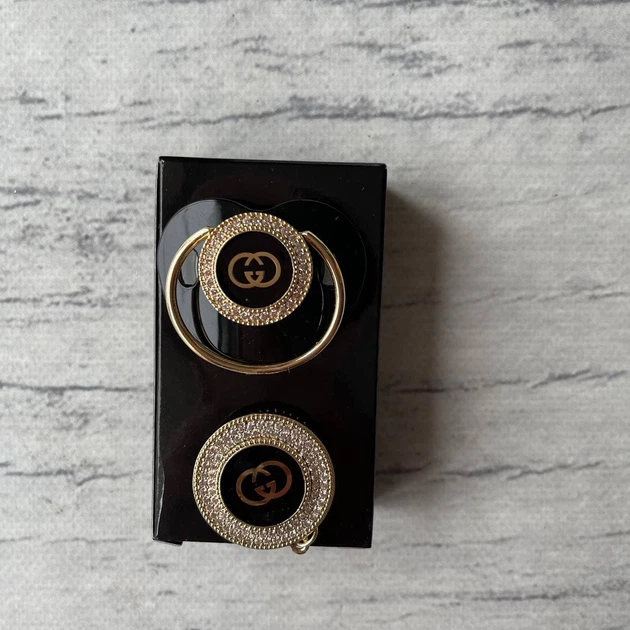 Комплект соска пустушка з утримувачем зі стразами в стил Gucci чорна