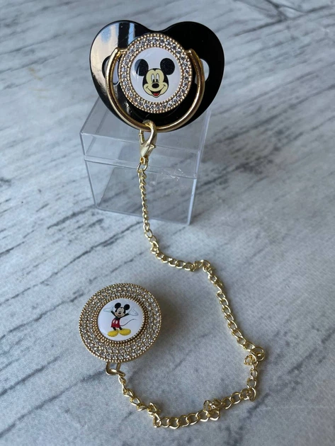 Комплект соска пустушка з утримувачем зі стразами 14 чорний