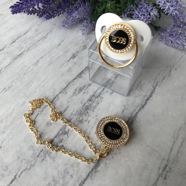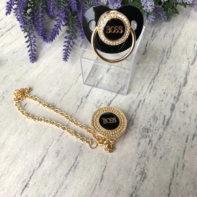 Комплект соска пустушка з утримувачем зі стразами BOSS 5 чорний