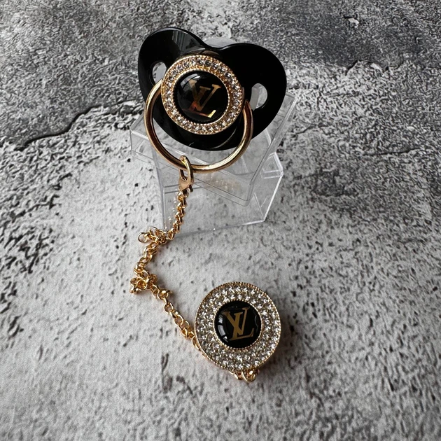 Комплект соска пустушка з утримувачем зі стразами Louis Vuitton чорний